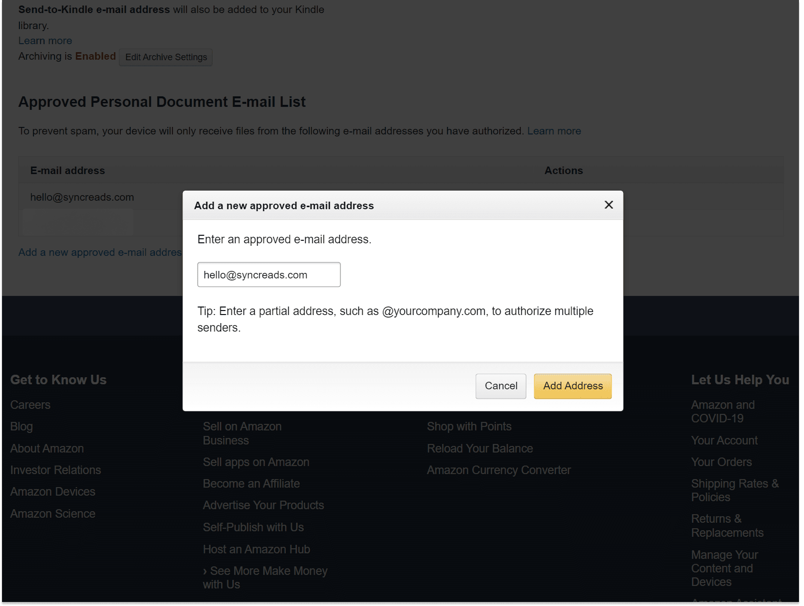 That's it! Your Kindle is now connected to SyncReads. Enjoy full power of the internet, happy syncing!